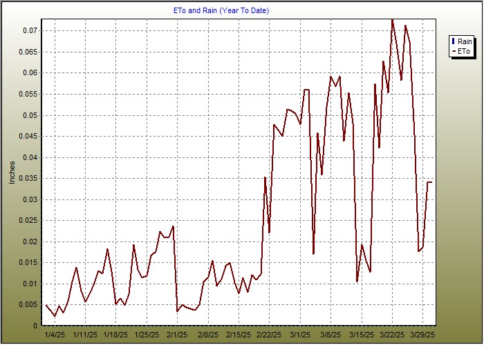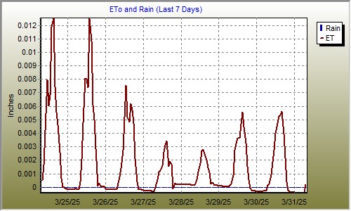 Last Hour Rain: 0.00" Last Hour ETo: 0.007" Solar: 345 w/m2 |